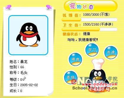 成长:Q哥哥每在线1小时成长值增加1,当然您还可以通过喂食、洗澡、学习等各种途径让您的QGG快速成长。