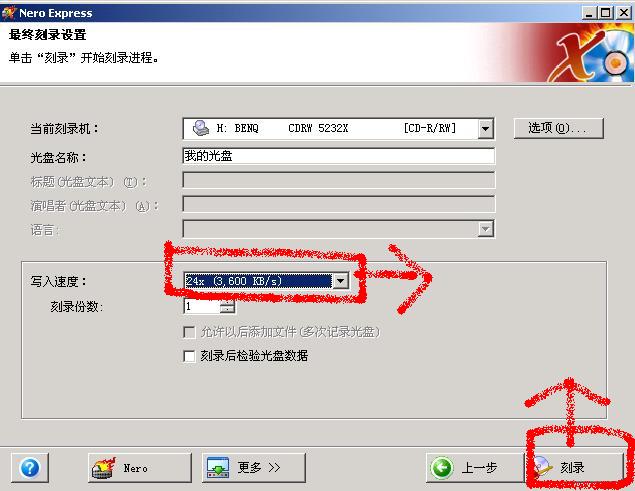 javascript:if(this.width>screen.width-333)this.width=screen.width-333" border=0 dypop="按此在新窗口浏览图片">然后在点 下一步 写入速度 选择32X或24X,推荐是选择24X,然后点 刻录(请看图8)